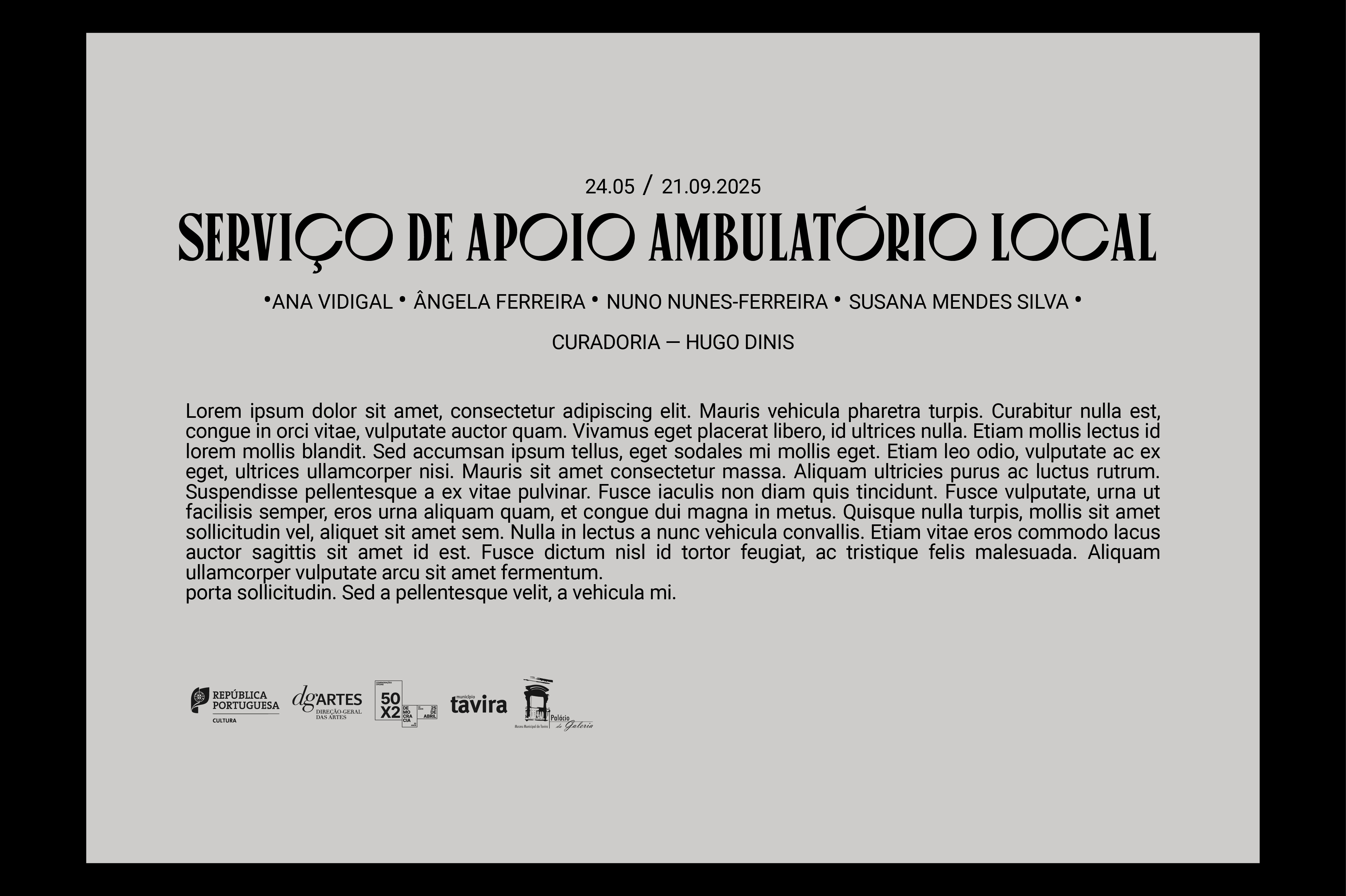 Este brandbook foi concebido como proposta para a criação da identidade visual da exposição "Serviço de Ambulatório Local", integrada na programação da Ermida de São Roque / Museu Municipal de Tavira.